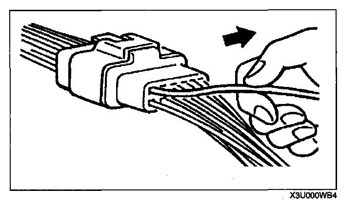 CAUTION: To prevent damage to the terminal, wrap a thin wire around the tester probe before inserting into terminal.