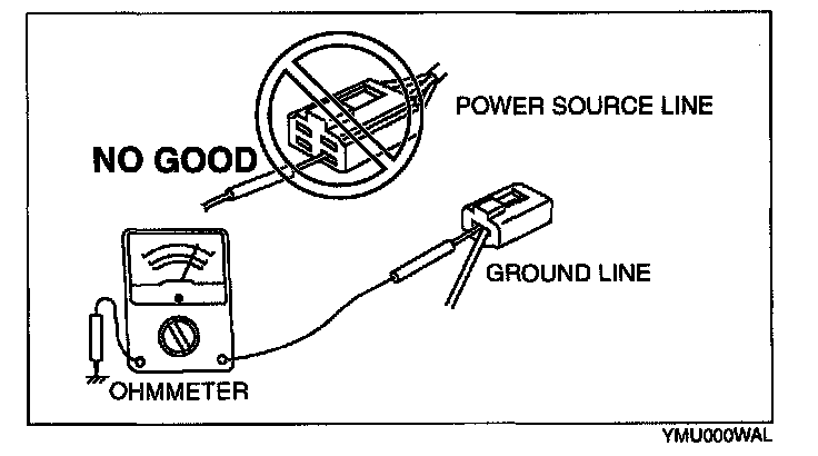 CAUTION: Do not connect the ohmmeter to any circuit where voltage is applied. This will damage the ohmmeter.