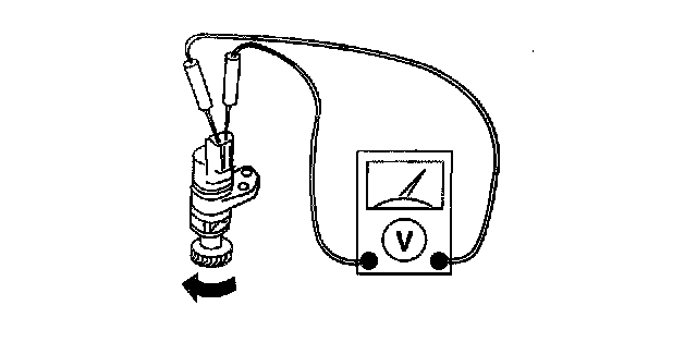 2. Measure the voltage between the vehicle speed sensor terminals while the gear is turning.