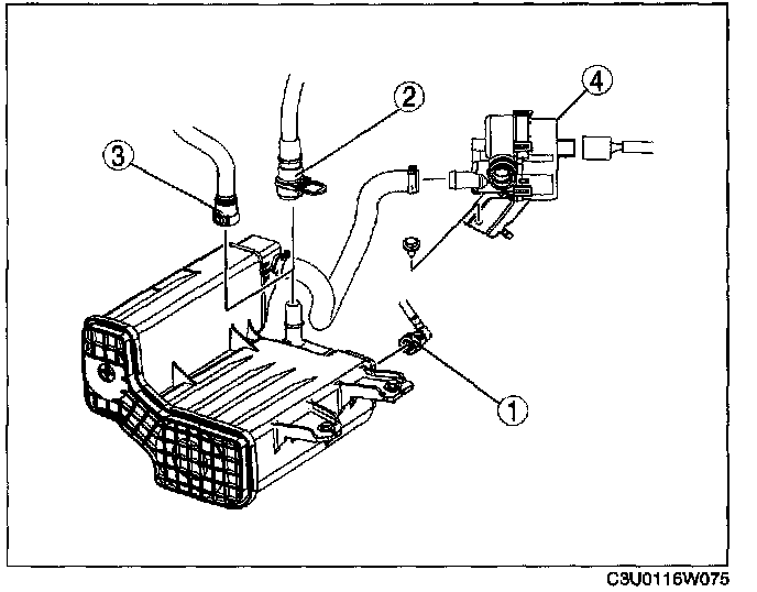 EVAPORATIVE EMISSION (EVAP) SYSTEM LEAK DETECTION PUMP REMOVAL/INSTALLATION1. Remove the charcoal canister protector.