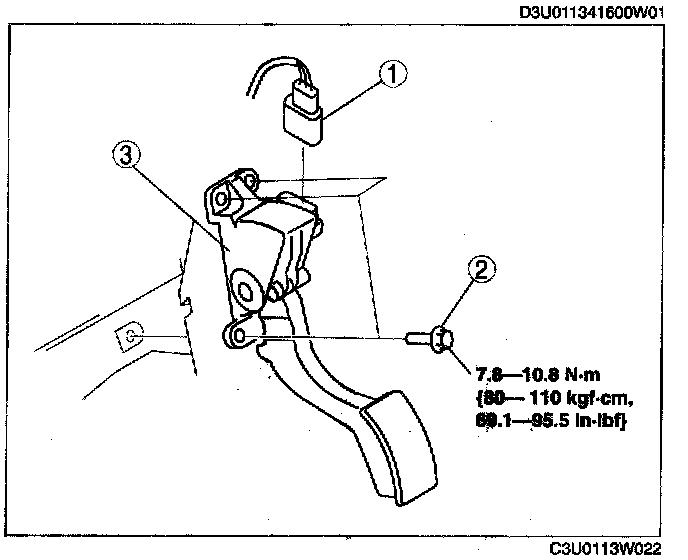 ACCELERATOR PEDAL REMOVAL/INSTALLATION 1.