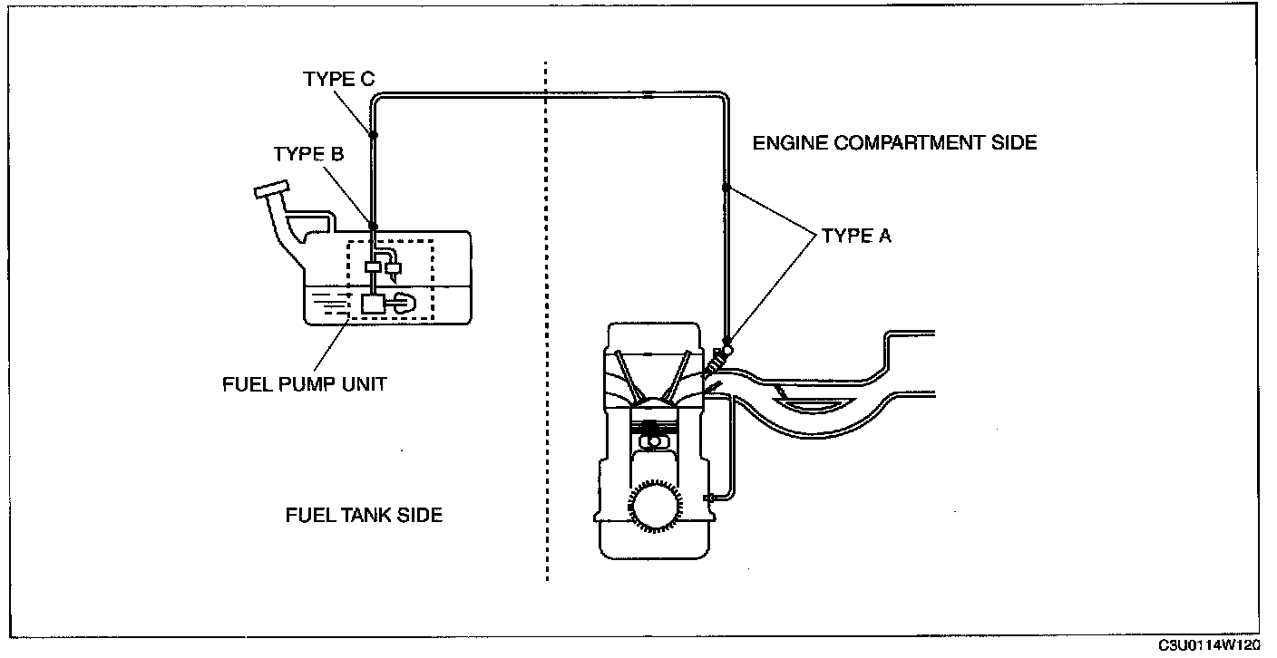 1. Follow "BEFORE SERVICE PRECAUTION" before performing any work operations to prevent fuel from spilling from the fuel system.