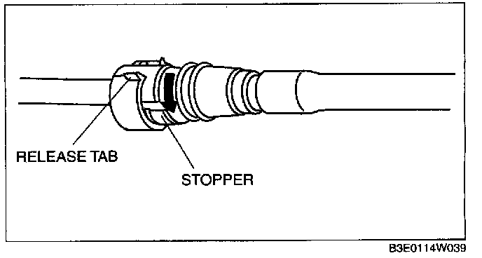 - A checker tab is integrated with the quick release connector for new fuel hoses and evaporative hoses. Remove the checker tab from the quick release connector after the connector is completely engaged with the fuel pipe.