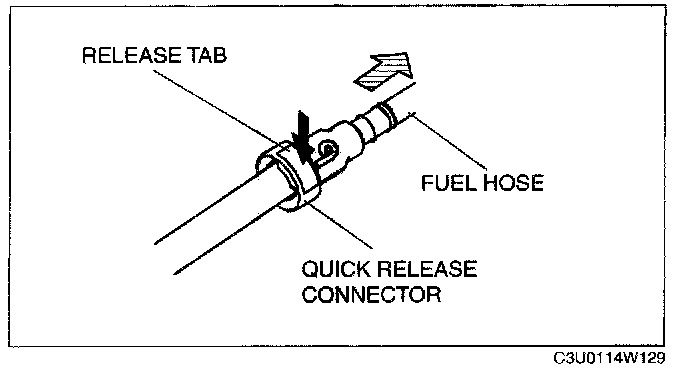 QUICK RELEASE CONNECTOR (FUEL SYSTEM) REMOVAL/INSTALLATIONWARNING: Fuel is very flammable liquid. If fuel spills or leaks from the pressurized fuel system, it will cause serious injury or death and facility breakage. Fuel can also irritate skin and eyes. To prevent this, always complete the "Fuel Line Safety Procedure", while referring to the "BEFORE SERVICE PRECAUTION".