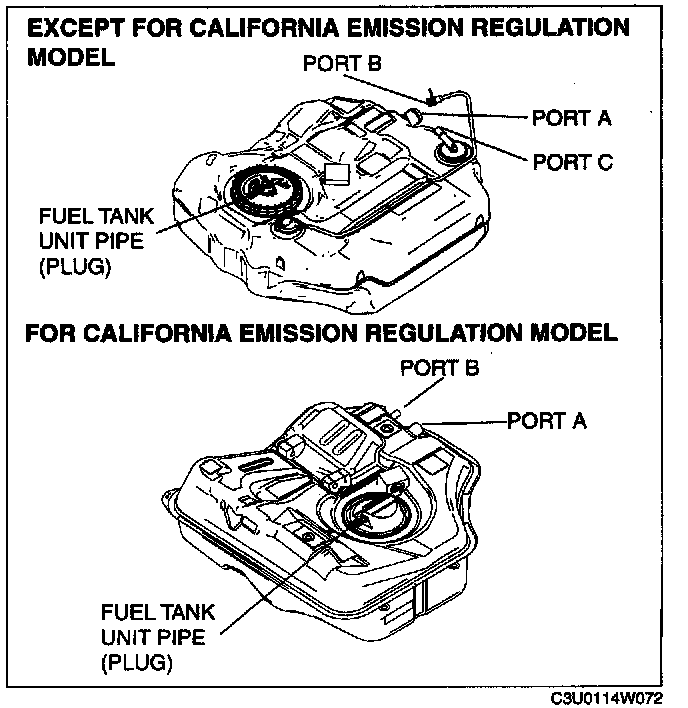 FUEL TANK INSPECTIONNOTE: The two rollover valves built into the fuel tank and check valves (two-way) built into the rollover valves are inspected in this inspection.