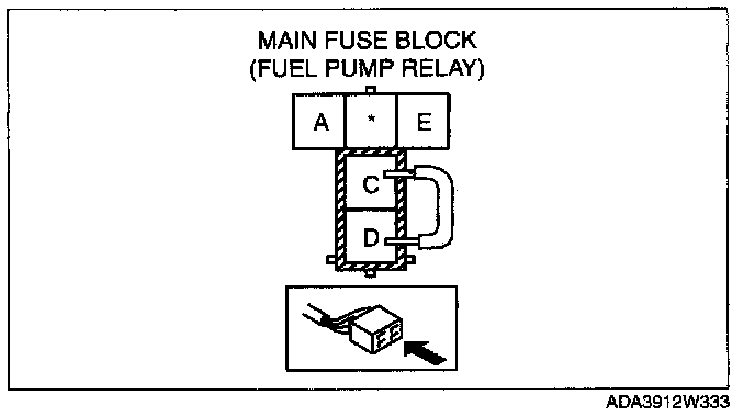 3. Using a jumper wire, short fuel pump relay terminals C and D and connect the negative battery cable to start the fuel pump.