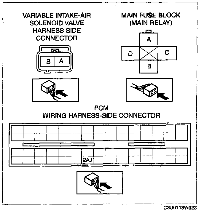 - Variable intake-air solenoid valve terminal A and PCM terminal 2AJ