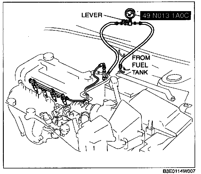 FUEL LINE PRESSURE INSPECTIONWARNING: Fuel line spills and leakage from the pressurized fuel system are dangerous. Fuel can ignite and cause serious injury or death and damage. To prevent this, complete the following inspection with the engine stopped.