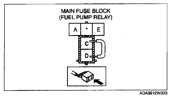 2. Using a jumper wire, short fuel pump relay terminals C and D and connect the negative battery cable to start the fuel pump.