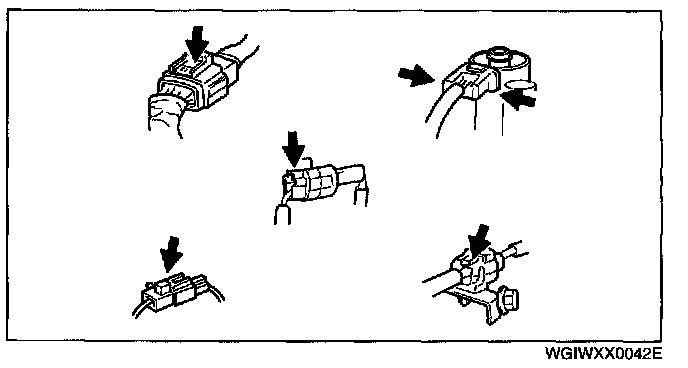 - Inspect the terminals of waterproof connectors from the connector side since they cannot be accessed from the wiring harness side.