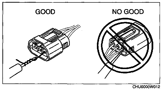 CAUTION: To prevent damage to the terminal, wrap a thin wire around the tester probe before inserting into terminal.