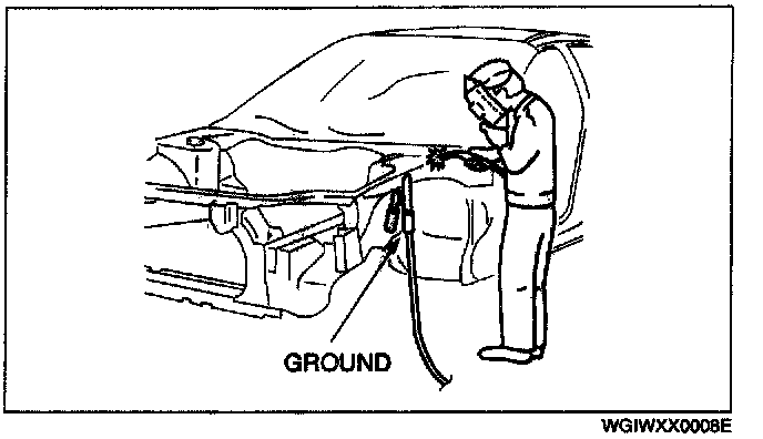 Precautions Before WeldingA vehicle has various electrical parts. To protect the parts from excessive current generated when welding, be sure to perform the following procedure.