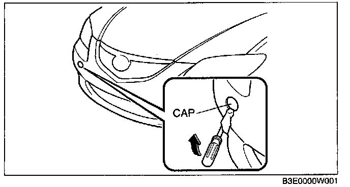 2. Wrap a screwdriver or similar tool with a soft cloth to prevent damage to the painted bumper and open the cap located on the front bumper.