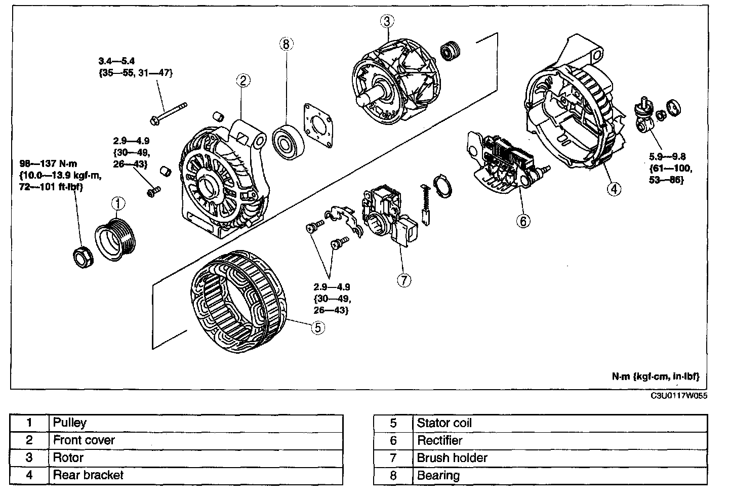 GENERATOR DISASSEMBLY/ASSEMBLYCAUTION: Melt the solder quickly, otherwise the diodes (rectifier) and regulator will be damaged by excessive heat.