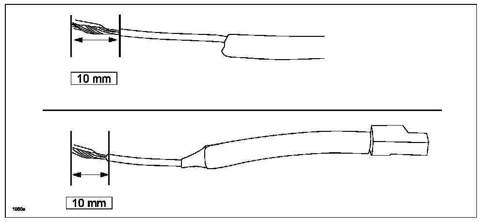 10. Remove the wire covering from the harness and short cord by 10 mm as shown.