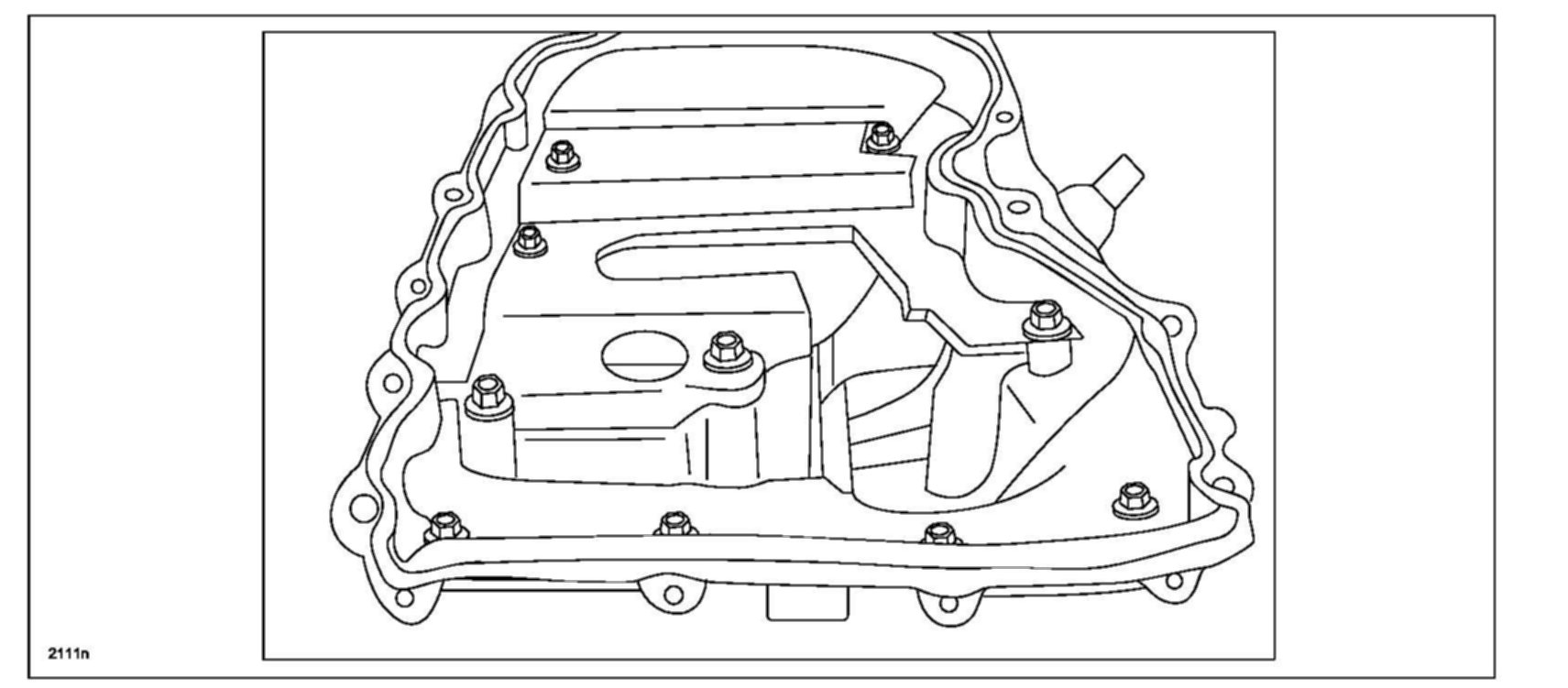 When reusing oil pan installation bolts, clean any old sealant from the bolts. Using bolts with the old seal adhering could cause cracks in the housing.