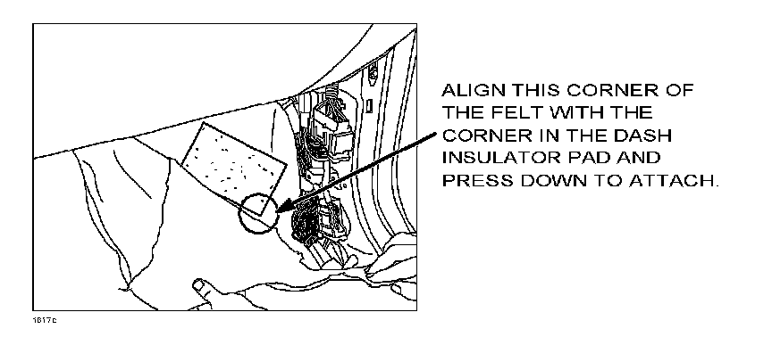 7. Position the felt pad on the dash insulator pad as shown (align the corner).