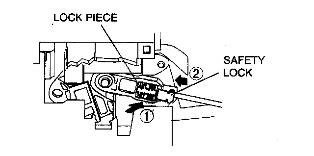 4. Lock the lock piece and safety lock of the selector cable (selector lever side) in the order as shown in the figure.