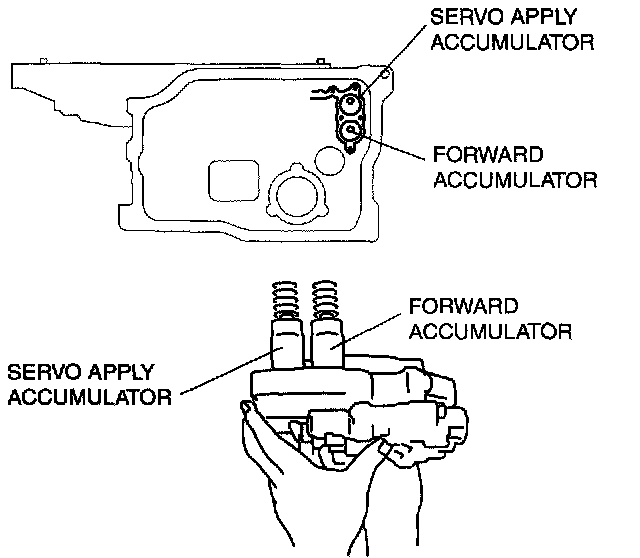 1. Install the accumulator springs and accumulators into the transaxle case.