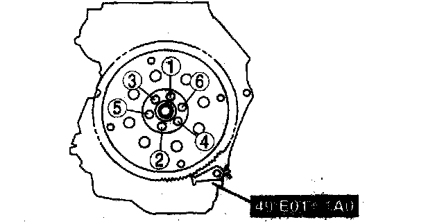 5. Tighten the drive plate mounting bolts in two or three steps in the order as shown in the figure.