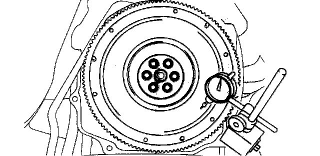 ^ Inspect the runout of the surface that contacts the clutch disc with the flywheel installed to the crankshaft.