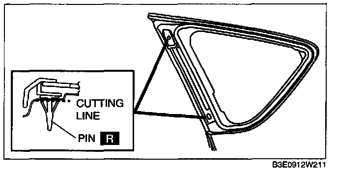 8. Fix one end of the SST (piano wire), and while pulling the other end, cut the sealant around the quarter window glass.