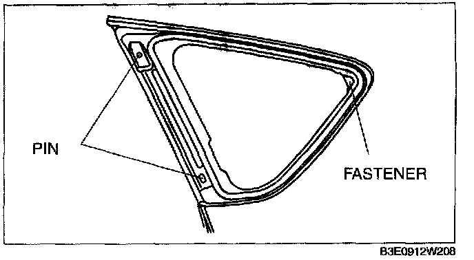 CAUTION: Proper installation of the glass may be difficult if sealant is cracked or the glass is pushed out by air pressure when a door is opened/closed with all the window glass closed. Leave all the windows open until the quarter window glass is installed completely.
