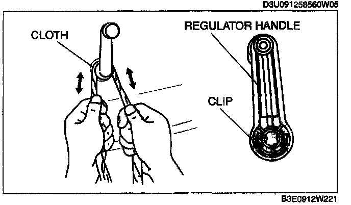 1. Using a cloth, remove the regulator handle installation clip and remove the regulator handle.