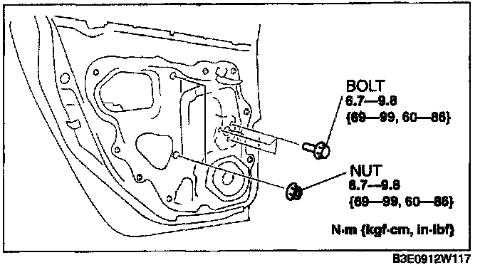 REAR MANUAL WINDOW REGULATOR REMOVAL/INSTALLATION1. Remove the following parts: