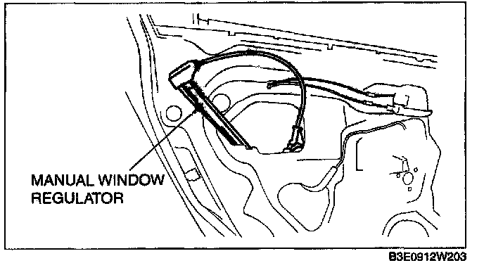3. Remove the rear manual window regulator through the rear door unit hole.
