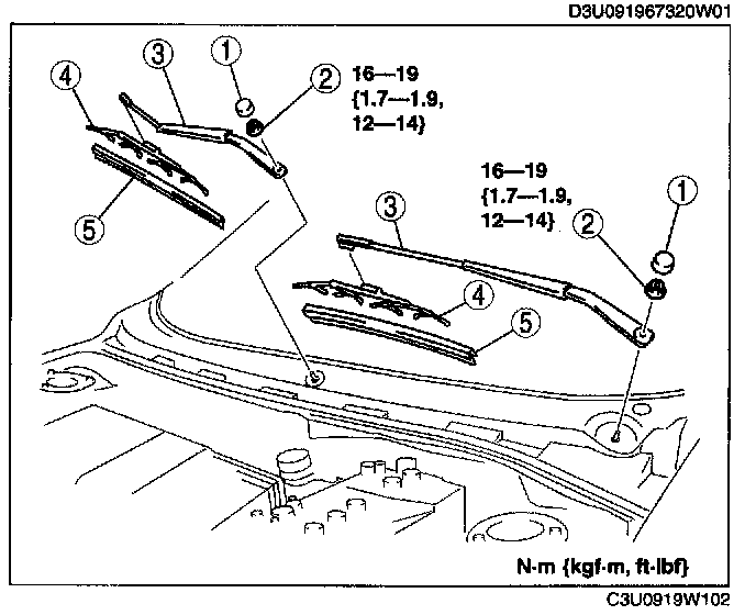 WINDSHIELD WIPER ARM AND BLADE REMOVAL/INSTALLATION