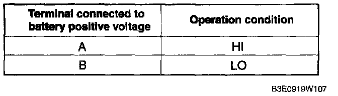 2. Connect battery positive voltage to windshield wiper motor terminal A or B, and ground to terminal D, then verify that the windshield wipers operate as shown in the table.