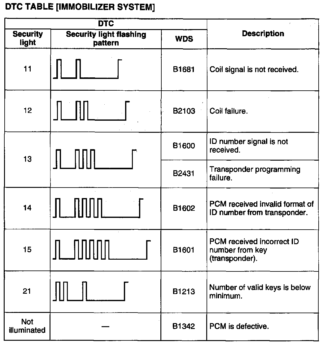 DTC TABLE [IMMOBILIZER SYSTEM]DTC 11 - 21: