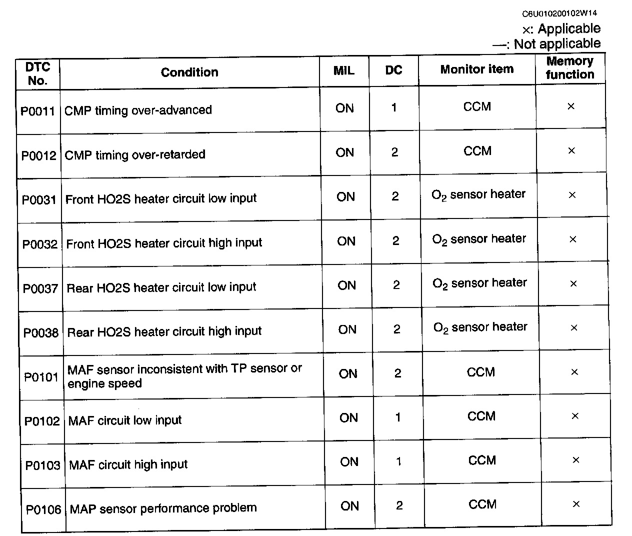 DTC P0011 - P0106: