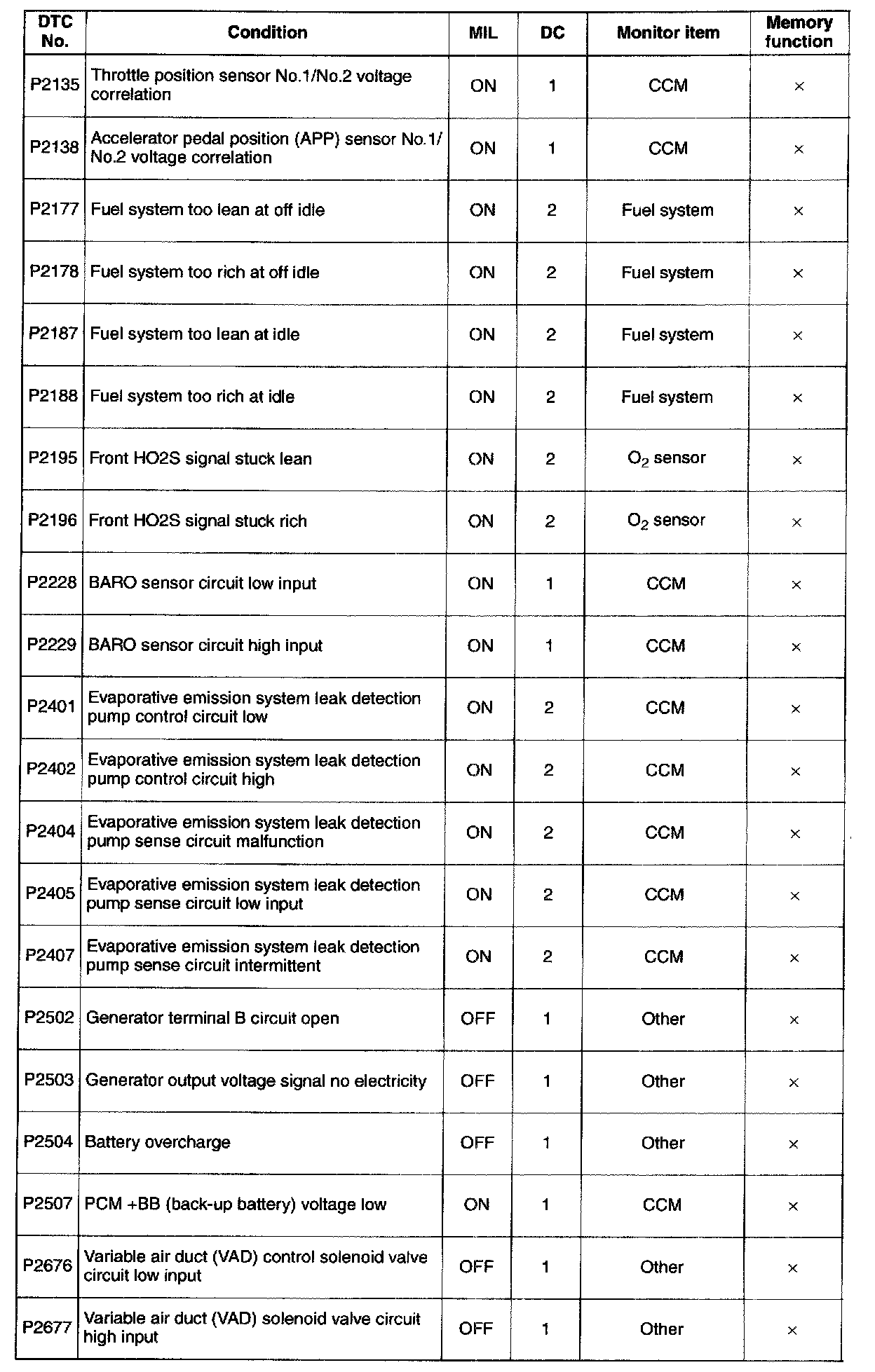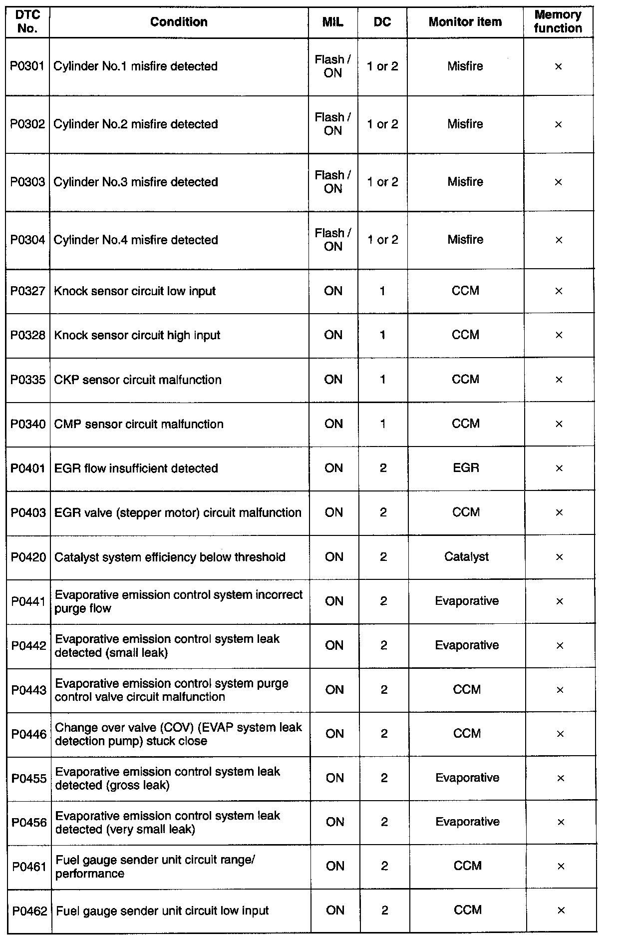 DTC P0301 - P0462: