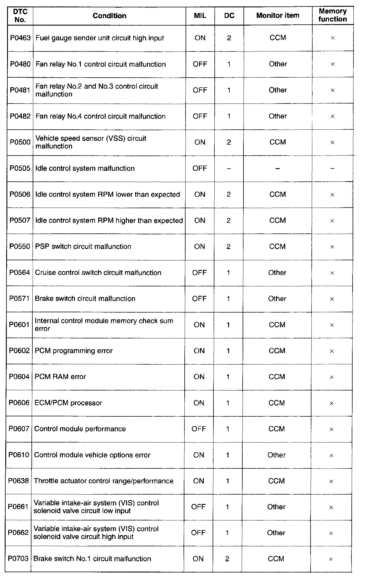 DTC P0463 - P0703: