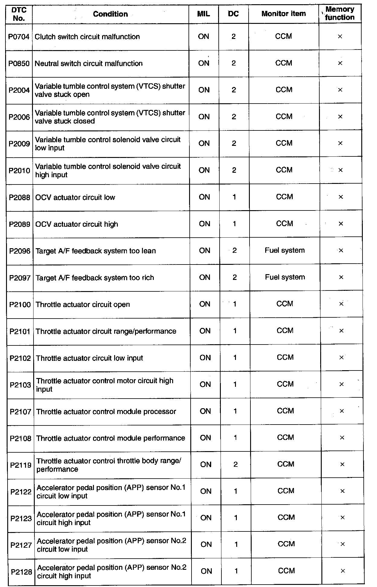 DTC P0704 - P2128: