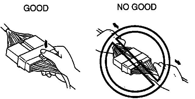 ^ When disconnecting connector, grasp the connectors, not the wires.