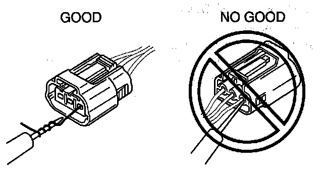 ^ To prevent damage to the terminal, wrap a thin wire around the tester probe before inserting into terminal.