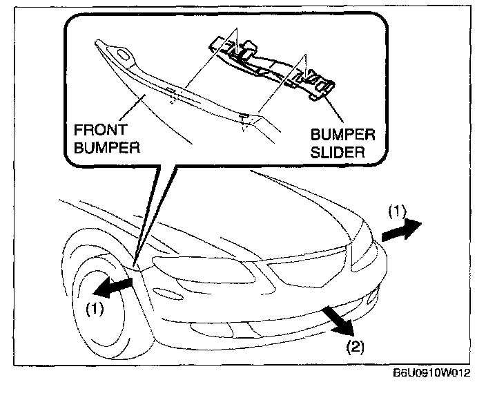 1. Pull the front bumper ends (wheel arch) outward to disengage from the bumper slider.