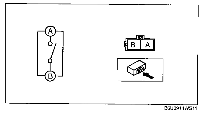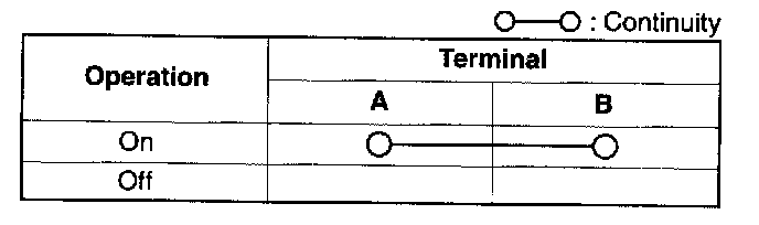 2. Inspect for continuity between the trunk lid open cancel switch terminals using an ohmmeter.