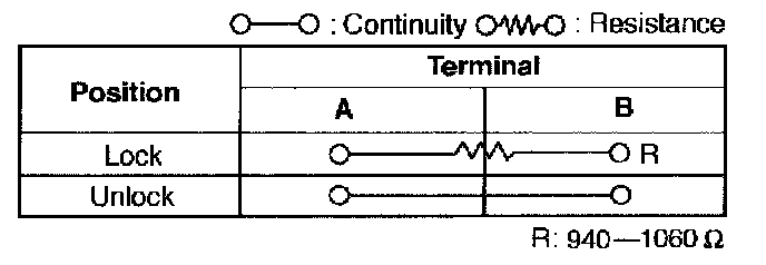 Inspect for continuity between the door lock switch terminals using an ohmmeter.