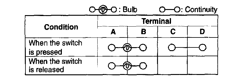 Inspect for continuity between the TCS OFF switch terminals using an ohmmeter.