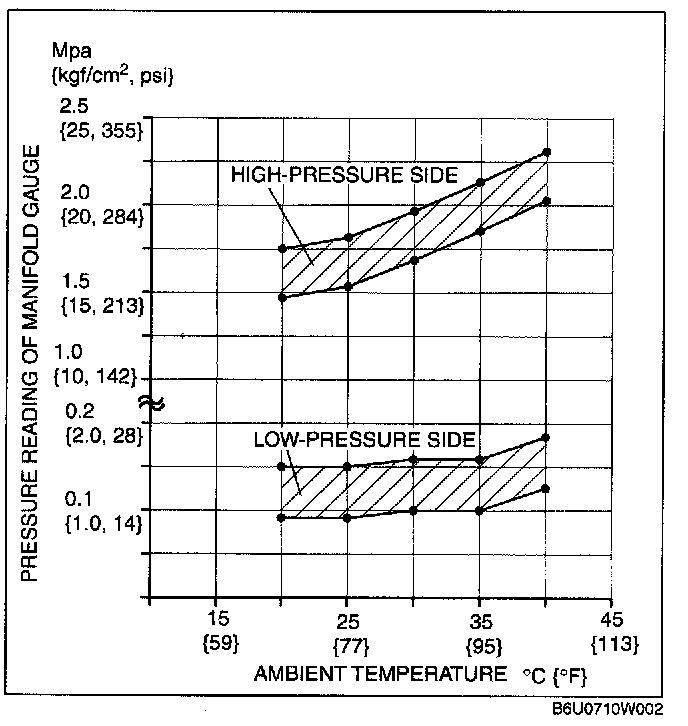 10. Verify that the intersection of the pressure reading of the manifold gauge and ambient temperature is in the shaded zone.