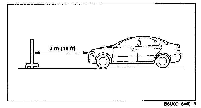 4. Position the vehicle 3 m {10 ft} in front of a white screen.