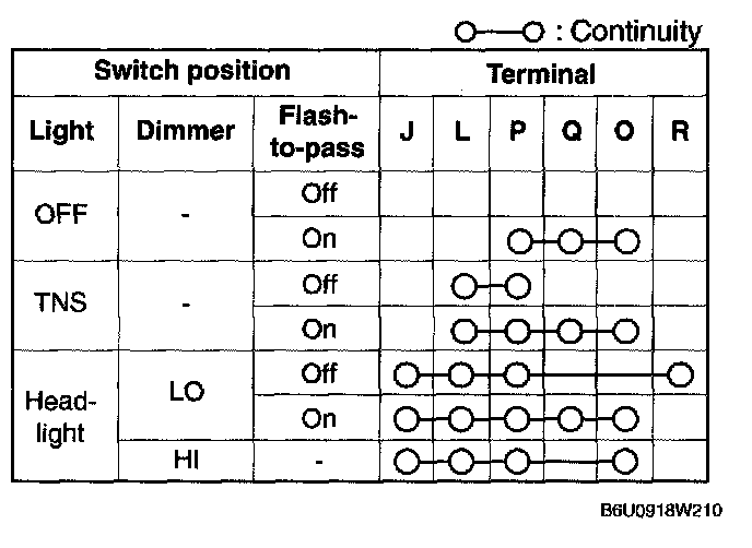 Inspect for continuity between the light switch terminals using an ohmmeter.