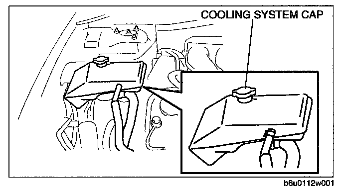 ^ Never remove the cooling system cap or loosen the radiator drain plug while the engine is running, or when the engine and radiator are hot. Scalding engine coolant and steam may shoot out and cause serious injury. It may also damage the engine and cooling system.