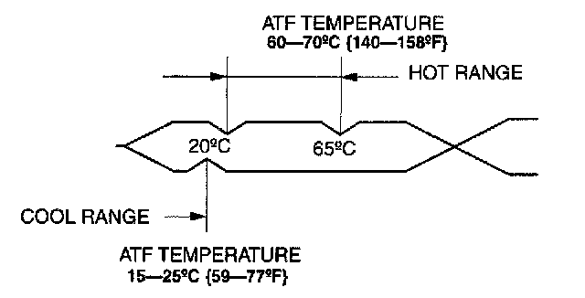 ^ If necessary, inspect the ATF before warming up the engine. In this case, use the cool range 15 - 25°C (50 - 77°F)