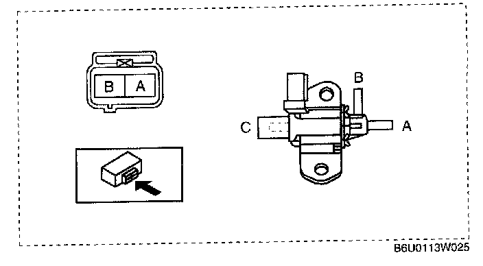- Variable tumble control solenoid valve terminal B (harness-side) and body GND