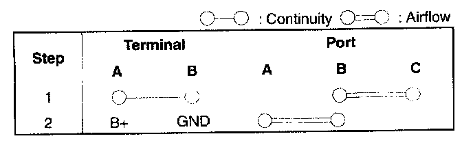 VARIABLE TUMBLE CONTROL SOLENOID VALVE INSPECTION1. Remove the variable tumble control solenoid valve. (See INTAKE-AIR SYSTEM REMOVAL/INSTALLATION.)